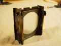 Vue arrière du détective permettant de voir le volet coulissant qui permet de "pousser" la plaque exposée afin de la reprendre par l'intermédiaire de la poche en cuir |