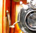 appareil detective format 6,5X9, construction en bois recouvert de cuir marron, 4 valeurs d'ouverture et 6 valeurs de vitesse