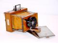 Petite chambre horizontale format 9X12, construite en acajou de Cuba, ferrures en laiton verni,décentrements vertical et horizontal, niveaux à bulle, Mise au pôint rapide, objectif à secteur